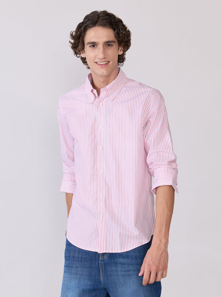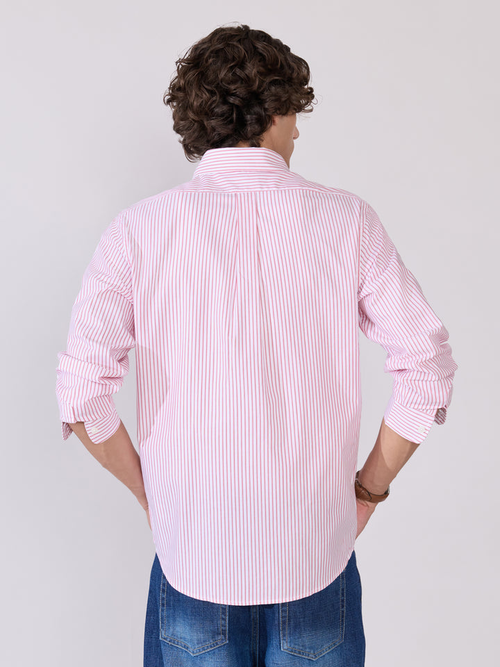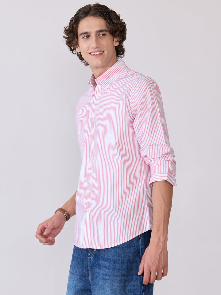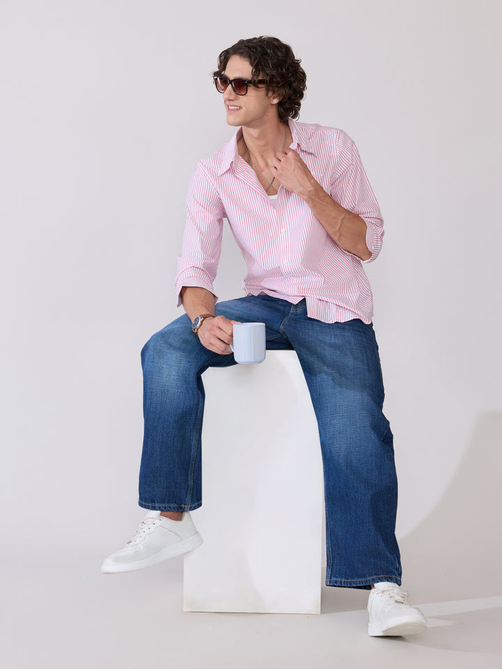 The Erzela Smart Fit Striped Shirt in Pink blends sharp tailoring with modern minimal style. Crafted from pure cotton, it offers a crisp structure, breathable comfort, and a polished appearance that works effortlessly for smart-casual looks. The subtle vertical stripes enhance your frame, giving you a clean and elevated silhouette suitable for workdays, meetings, and refined evening outings