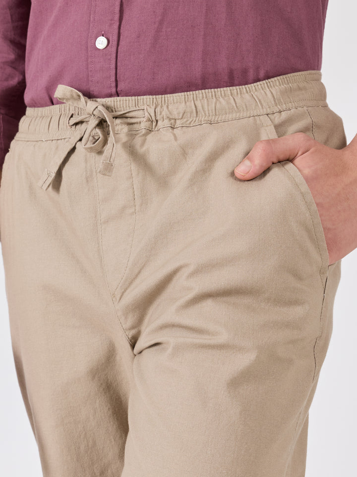 Grantham - Relaxed Fit Linen Joggers - Beige
