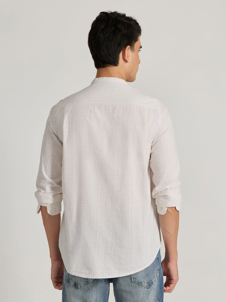Hadrian - Band Collar Checks Shirt - Light Peach