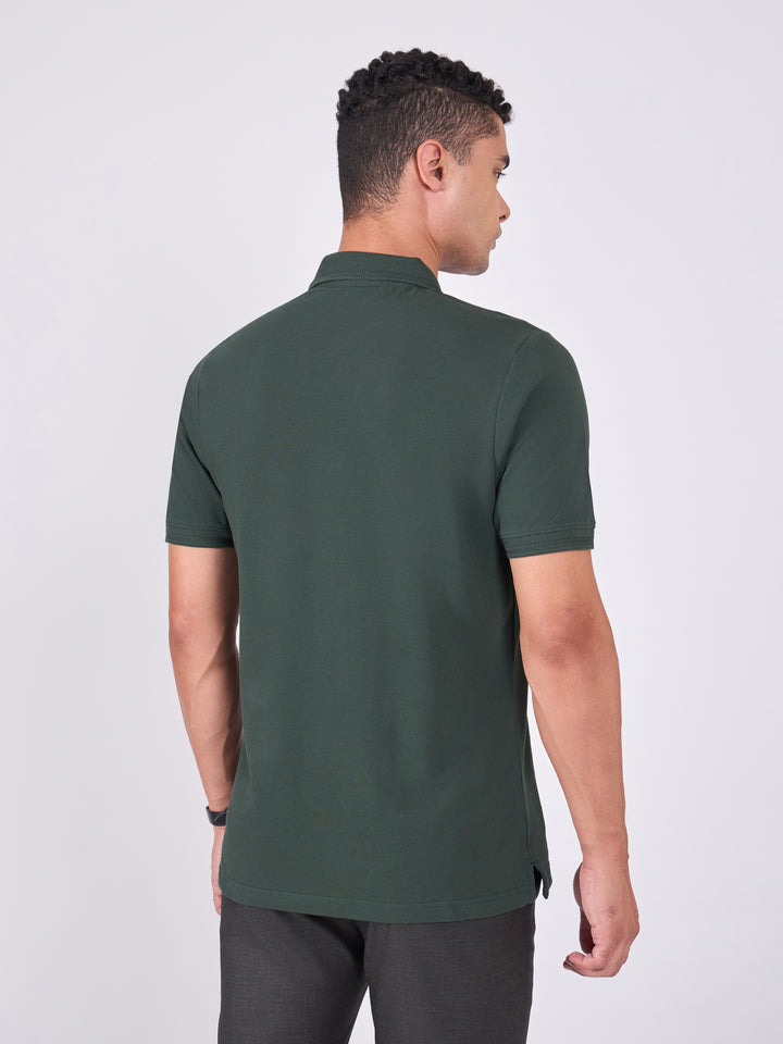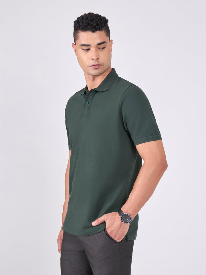 The Norwell Polo T-Shirt in Bottle Green is a versatile staple that blends comfort with smart casual style. Made with a breathable mix of cotton and polyester, it offers durability while keeping you cool throughout the day. Designed in a regular fit with half sleeves, this polo is perfect for everyday wear or semi-formal outings.