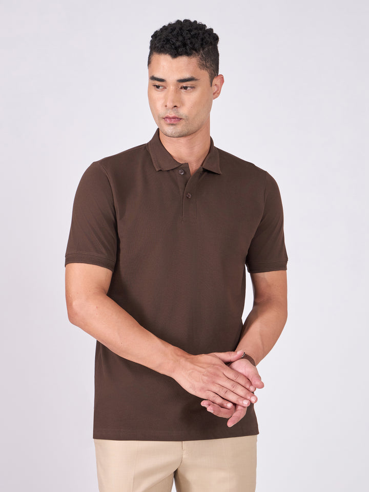 The Norwell Polo T-Shirt in Dark Coffee is a versatile staple that blends comfort with smart casual style. Made with a breathable mix of cotton and polyester, it offers durability while keeping you cool throughout the day. Designed in a regular fit with half sleeves, this polo is perfect for everyday wear or semi-formal outings.