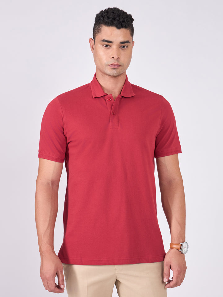 The Norwell Polo T-Shirt in Robust Red is a versatile staple that blends comfort with smart casual style. Made with a breathable mix of cotton and polyester, it offers durability while keeping you cool throughout the day. Designed in a regular fit with half sleeves, this polo is perfect for everyday wear or semi-formal outings.