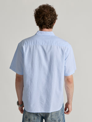 Elevate your casual style with the Oran Striped Shirt in Light Blue. Crafted from 100% premium cotton, this shirt ensures all-day comfort and breathability. Designed with a classic fit and half sleeves, it offers a relaxed yet refined look perfect for warm days. The subtle stripes add a touch of sophistication, making it versatile for both casual outings and semi-formal occasions. Ideal for effortless sophistication, this shirt pairs seamlessly with jeans or chinos for a confident.
