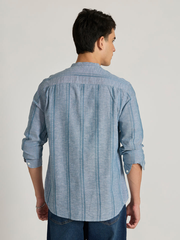 Structure: Band collar, Subtle vertical stripes and full sleeves