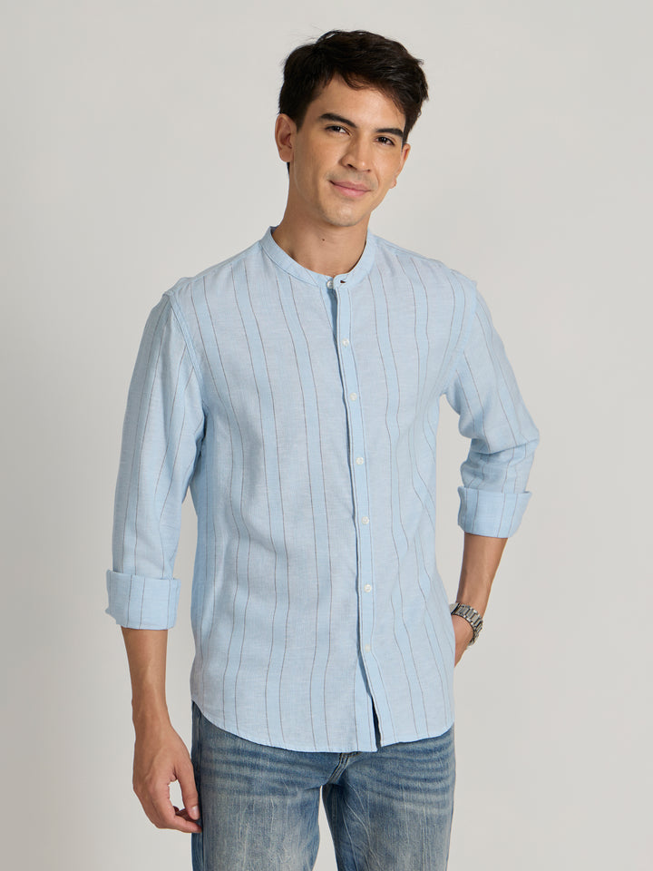 Structure: Band collar, Subtle vertical stripes and full sleeves