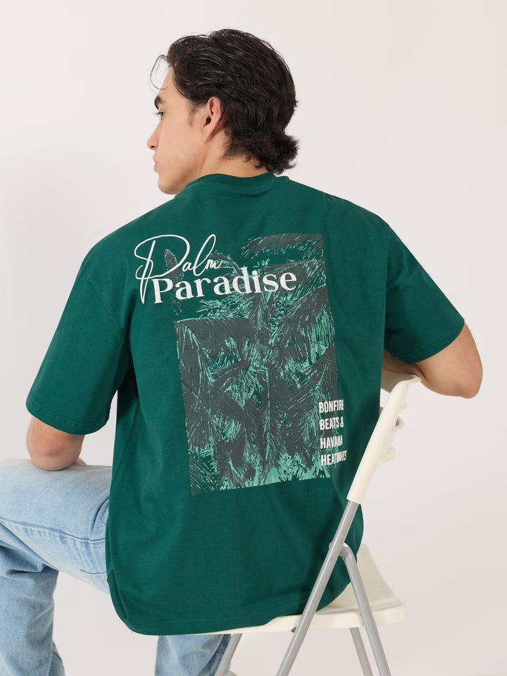 Sheldon - Palm Paradise Graphic Green Loose Fit T-Shirt