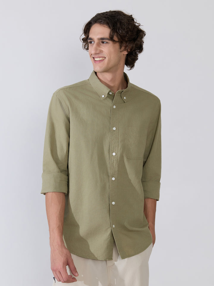Taliko - Comfort Fit Light Olive Linen Shirt