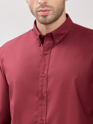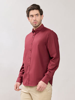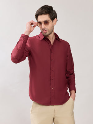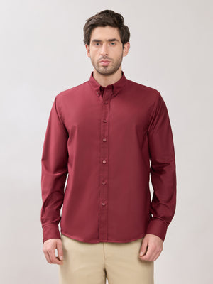 Vosha - Relaxed Fit Plain Shirt - Maroon