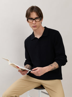 Design: Knitted texture with polo collar