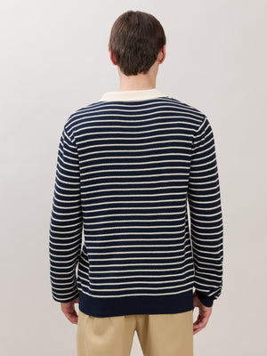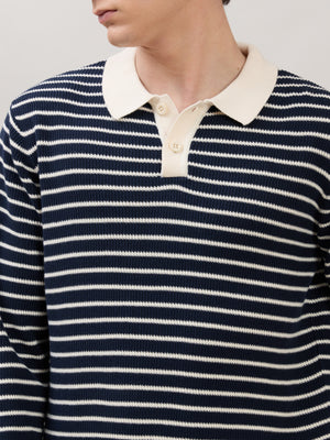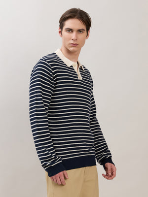 Xosio-2 - Regular Striped Knit Polo Sweater - Navy