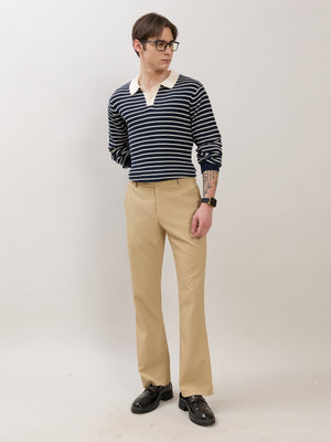 Design: striped Knit texture with polo collar