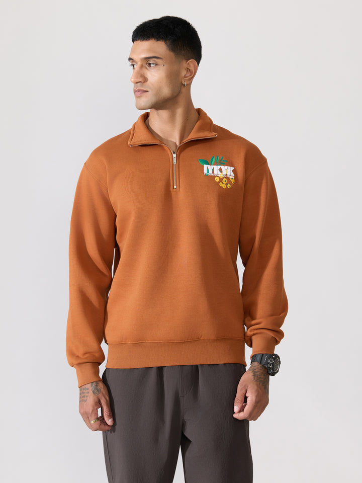 Redefine laid-back sophistication with the Zelios Rust Brown Graphic Half-Zip Sweatshirt. Made from a soft blend of cotton and polyester, this piece offers the perfect balance of warmth, structure, and breathability.