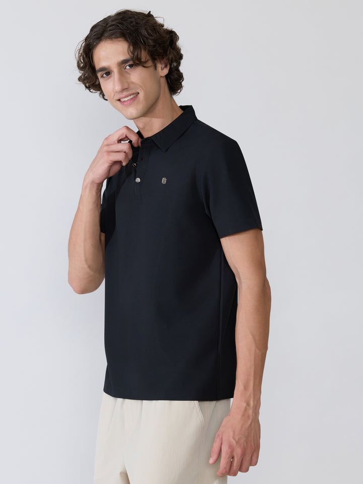 The Zoltan Regular Fit Polo in Black blends comfort with elevated everyday style. Designed for a clean and structured look, this polo offers a smooth, breathable feel with a refined drape—making it a wardrobe essential for casual outings, workdays, and smart evening plans. The subtle logo detailing adds a premium touch while maintaining a minimal, polished aesthetic look.