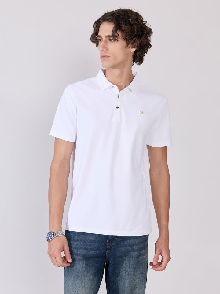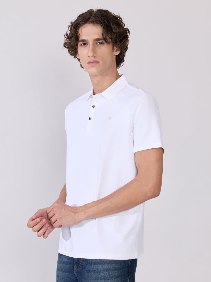 The Zoltan Regular Fit Polo in white blends comfort with elevated everyday style. Designed for a clean and structured look, this polo offers a smooth, breathable feel with a refined drape—making it a wardrobe essential for casual outings, workdays, and smart evening plans. The subtle logo detailing adds a premium touch while maintaining a minimal, polished aesthetic look.
